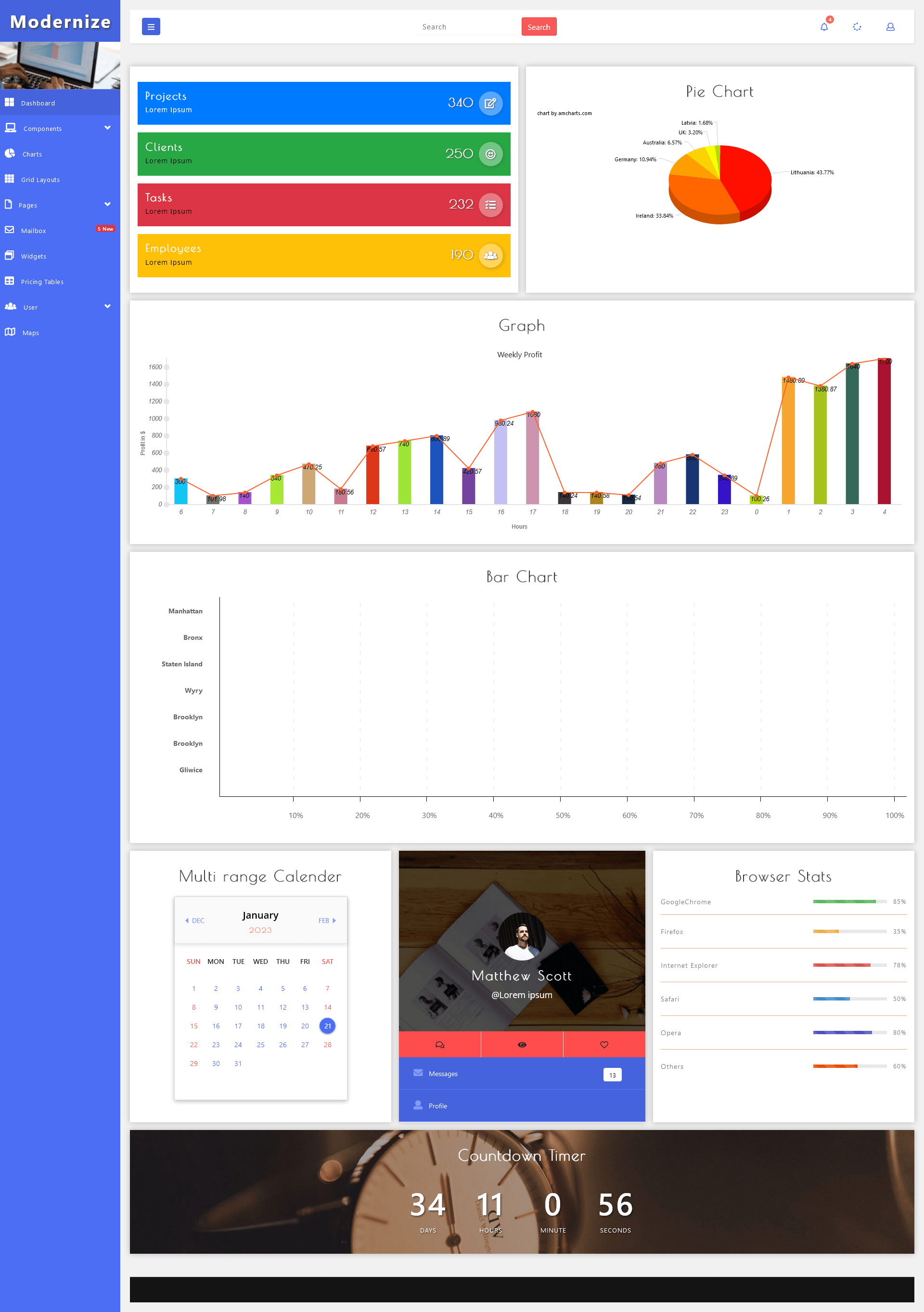 Html5, CSS3, TypeScript, Angular, Vue.js, jQuery, AJAX, Json, Bootstrap, APS, AI, Sass, LESS, Font Awesome.